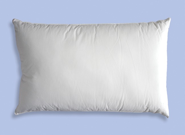 Almohadas simil pluma de duvet forradas en microfibra blanca.