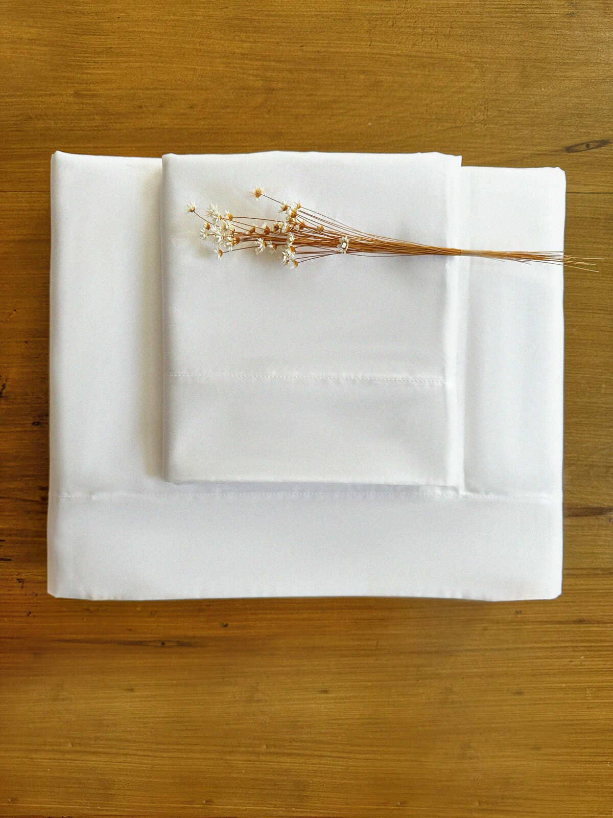 Terminación costura recta en percal 160, 180 hilos mezcla íntima 60% algodón 40% poliéster, sarga 250 hilos mezcla íntima 60% algodón 40% poliéster, satén 300 y 400 hilos 100% algodón egipcio.