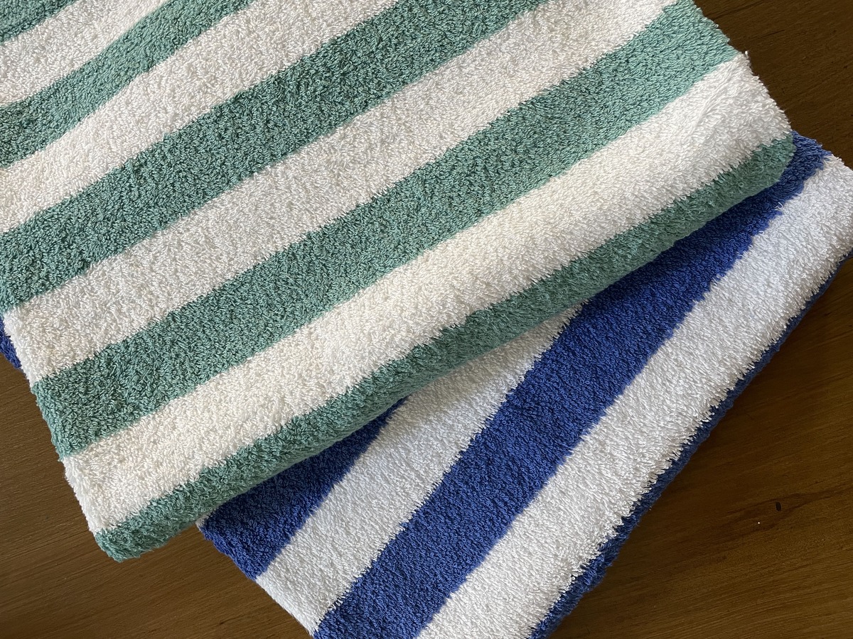 Toallón de pileta, 500gr/m2, importado, rayado azul y blanco o verde y blanco.